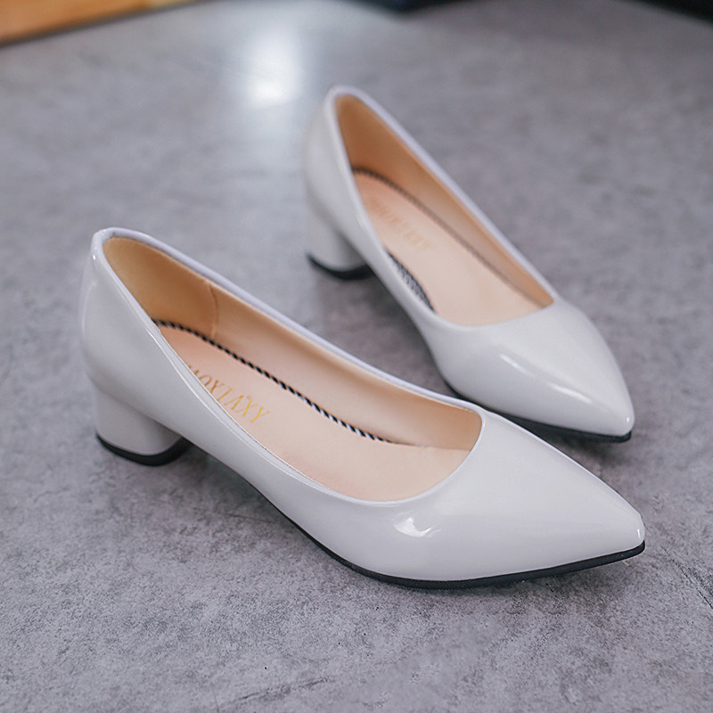 Mùa Xuân Giày Đơn Mũi Nhọn Giày Cao Gót Da 4cm Trên Bơm Văn Phòng Kinh Doanh Nữ Gót Thấp